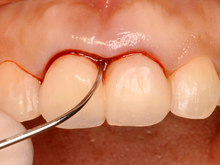 炎症を起こし赤みを帯びていた歯肉は、徐々にピンク色に引き締まり、厚みが回復してきました。健全に回復した歯肉からは、細菌侵入に抵抗する白血球を豊富に含む滲出液が分泌され、これにより治療後の虫歯や歯周病の予防効果が高まります。
