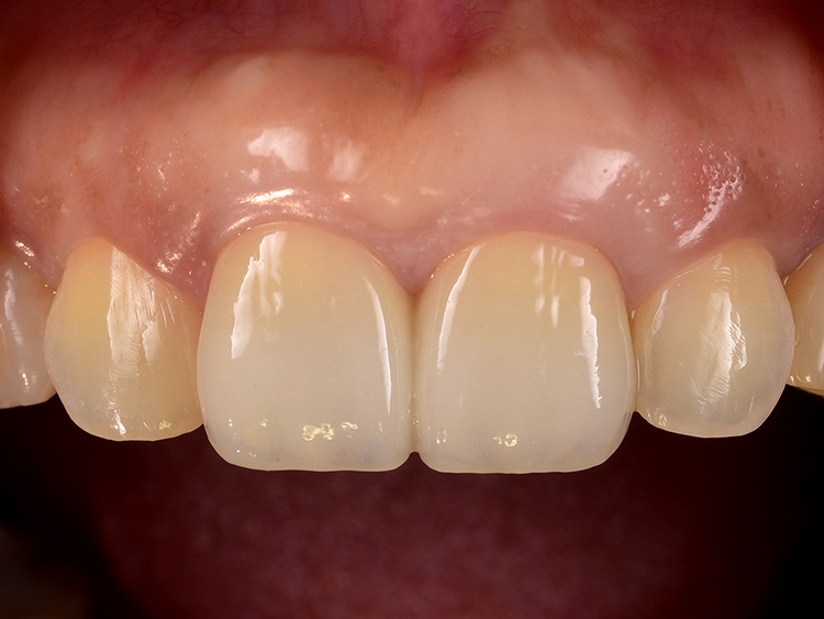 厚みとハリのある健全な歯周組織が回復しました。今回は両歯ともに歯根の長さが短いことから、互いに負担を分散し安定性を高めるため、連結冠としました。これにより咀嚼機能が向上し、患者さんは安心して食事ができるようになりました。